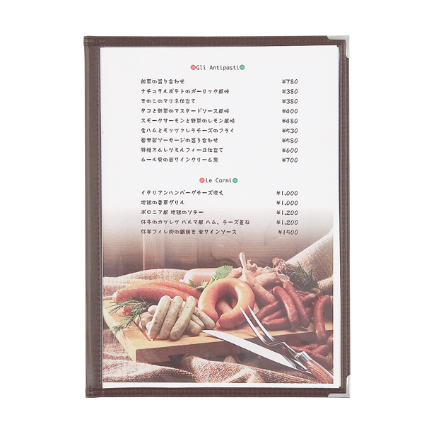 アーバンメニュー UM-2 スリム 4ページ ブラウン ピンタイプ メニューブック